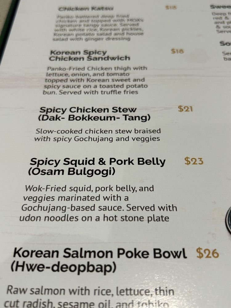 Wok-Fried squid, pork belly and veggies marinated with Gochujang-based sauce. Served with udon noodles, Chef's choice of () banchan sides, white rice and house salad or scallion salad with soy vinaigrette or ginger dressing